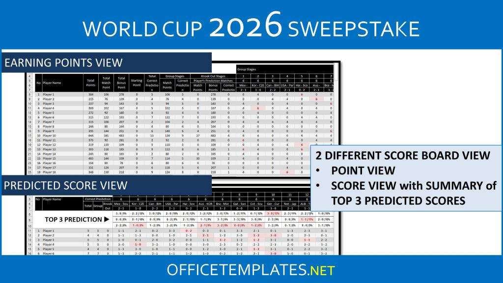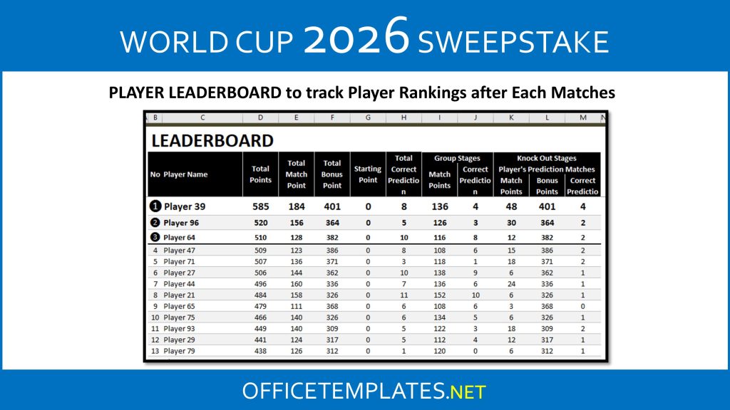 Packed with a variety of features, this template makes following the 2026 FIFA World Cup more interactive and competitive. Whether you are hosting a small game among friends or a larger office competition, the spreadsheet helps you manage predictions, calculate points automatically, and determine who truly has the sharpest football instincts.